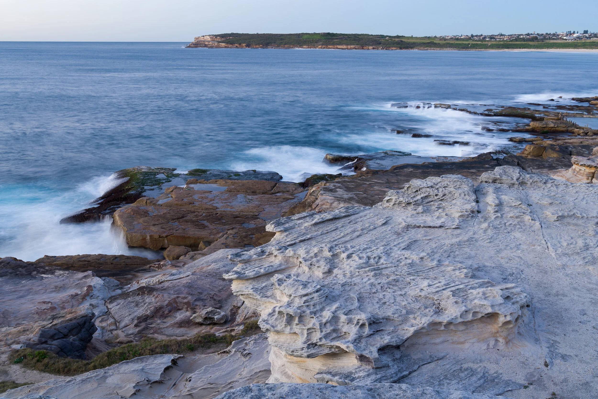 The eastern side of Sydney has some interesting rock formations that line the coast. Bays and beaches lie between the rocky cliffs, which of course have expensive houses perched along them.